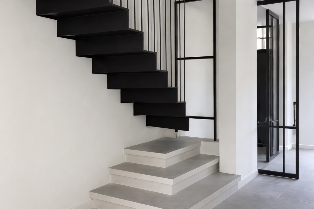 Zwevende trap door stalen constructie