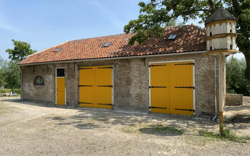 Openslaande stalen deuren in monumentale wagenschuur, Schipluiden