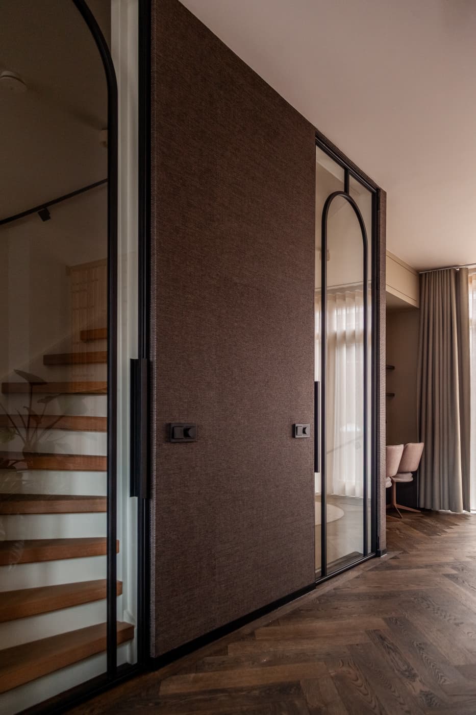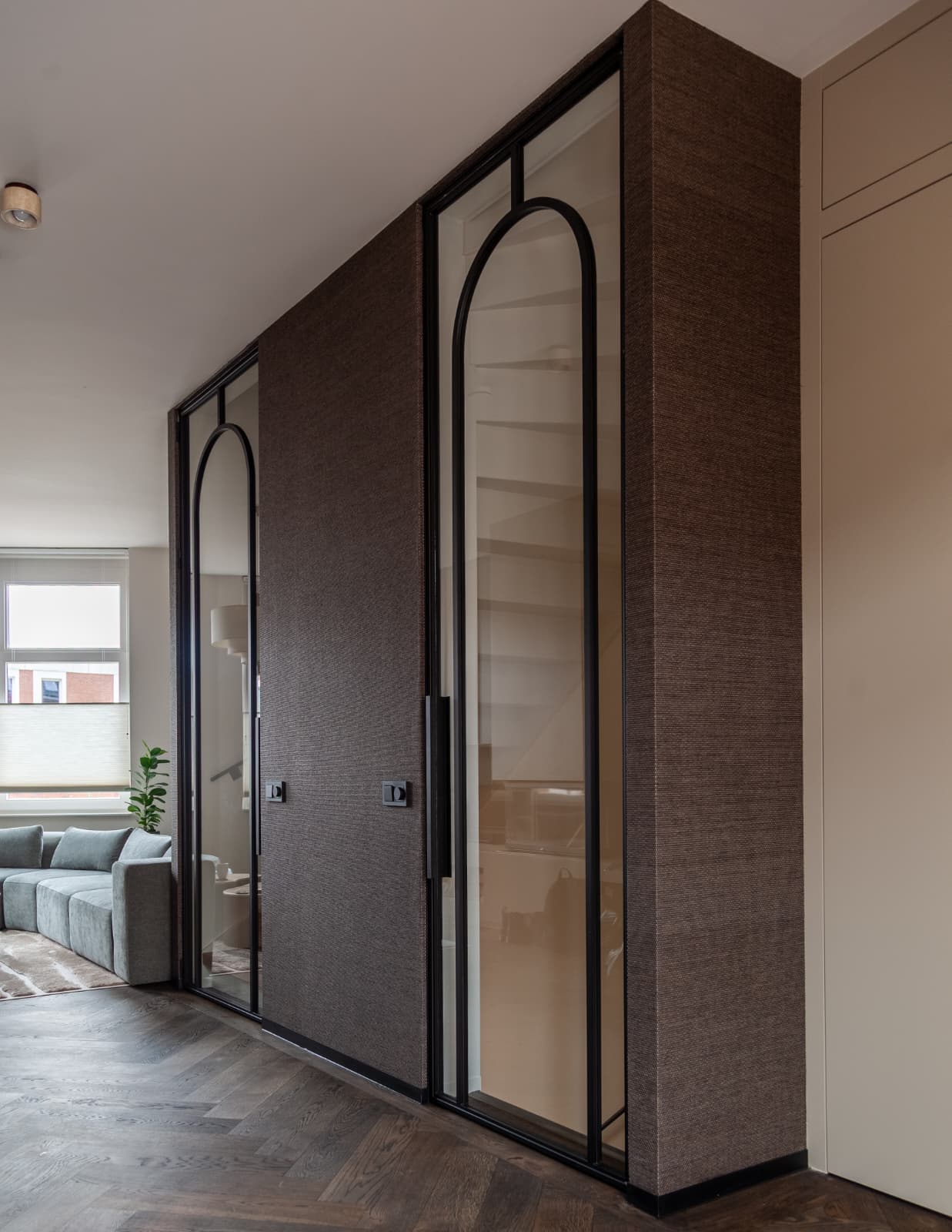 Voor het meest recente project plaatsten we stalen deuren met een ronde boog, een steeds populairdere trend. De deuren, met een indrukwekkende hoogte van maar liefst 3 meter (!), zorgen voor een ruimtelijk gevoel in de woning.
